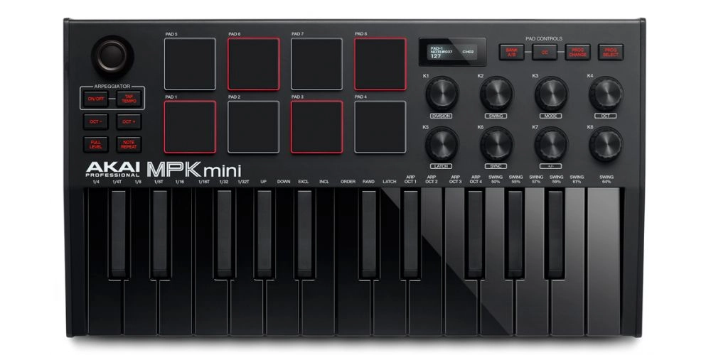 Akai MPK MINI MK3 Black tiene todo lo que el productor moderno necesita: compatibilidad universal para una integración